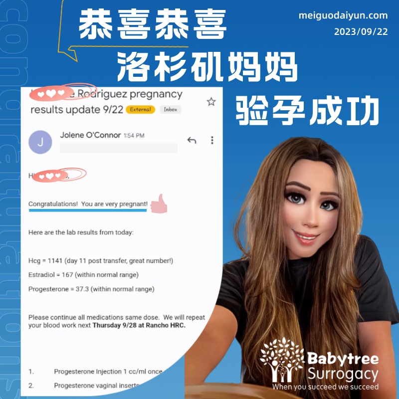 又一个确认怀上,9/11移植,9/22验孕,HCG数值1141,非常好的数值,一次成功,感谢Dr Nelson,恭喜!